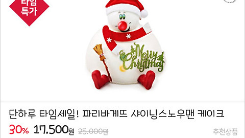 | 11번가 데이 타임특가 : 파리바게트 케이크 기프티콘 구매 (0) | 2017.12.11 |