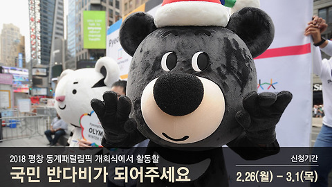 | 평창 동계패럴림픽 마스코트 반다비 신청(2.26~3.1) (0) | 2018.02.26 |