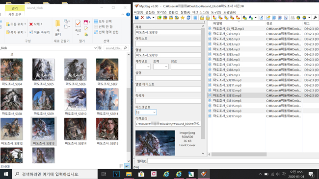 다운로드한 이미지는 mp3tag 프로그램을 이용해서 각 MP3에 맞는 앨범아트를 넣어주면 된다.
