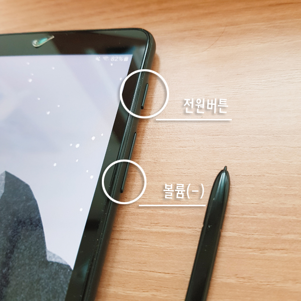 이 기능으로 화면캡쳐하고 싶다면 전원버튼과 볼륨 아래버튼을 동시에 눌러주면 된다. (볼륨 위가 아니라 아래(-) 버튼!!!)