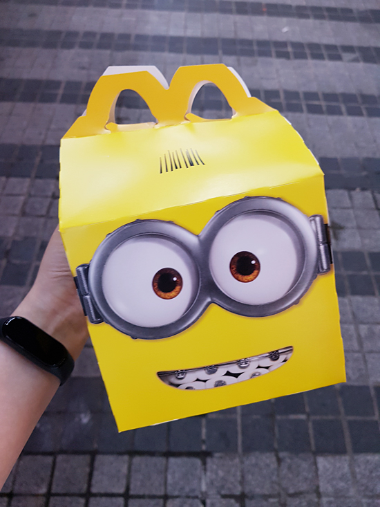 미니언즈로 디자인된 해피밀 상자인데, 귀엽다.