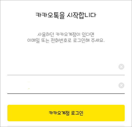 다시 카카오톡 앱을 열면 아래와 같이 로그인이 풀리고 다시 로그인을 하라고 나온다.
