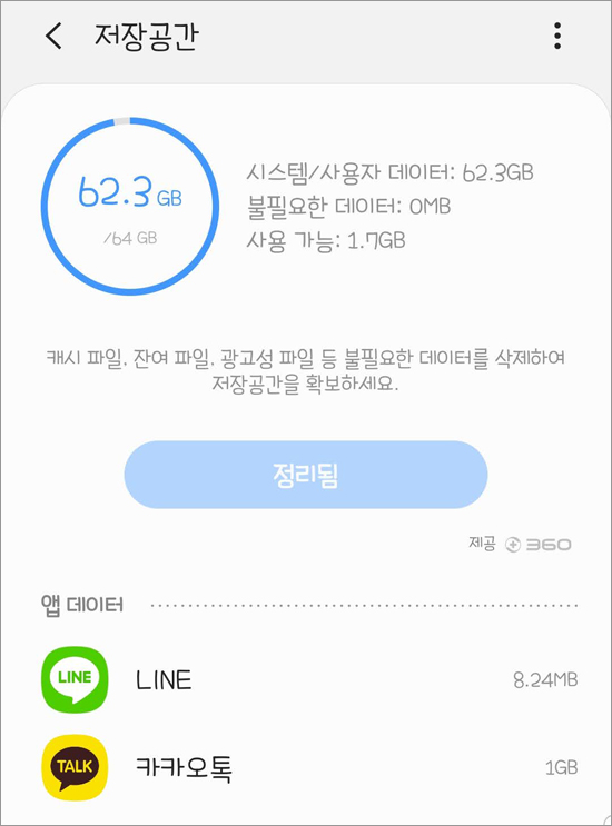 위에 과정만으로 핸드폰 저장공간이 1.6기가 늘어났다.