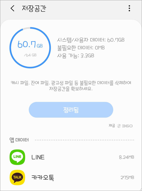 카카오톡 저장공간은 2기가 넘게 늘어났다.