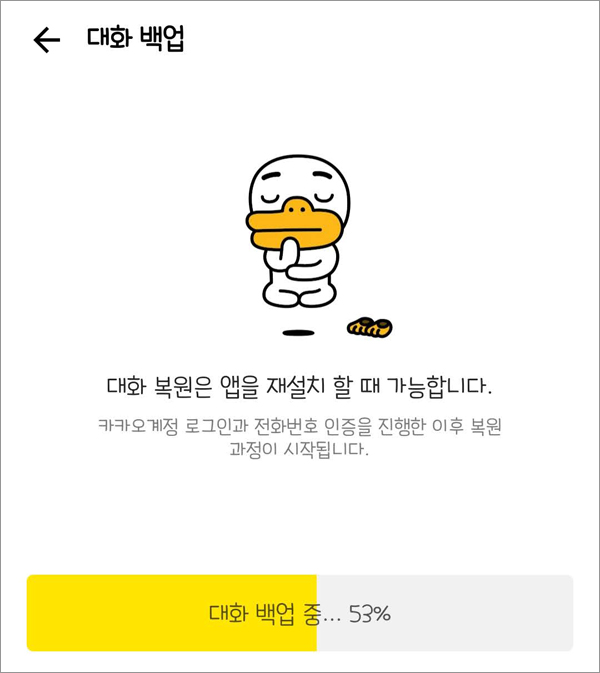 대화 복원은 앱을 재설치할 때 가능하기 때문에 앱 재설치=데이터 삭제 후에 카카오톡 로그인을 다시 해야 한다.