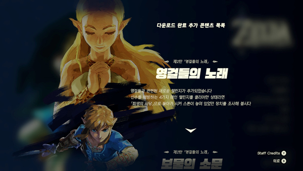 젤다 야숨(기본팩) 플레이가 좀 지루해질 무렵에 추가 콘텐츠(=dlc)를 구입했다. 왜 진작에 구입안했나 싶을 정도로 재미있었다. 오토바이도 준다기에 난 바로 생길 줄 알았지...