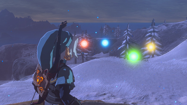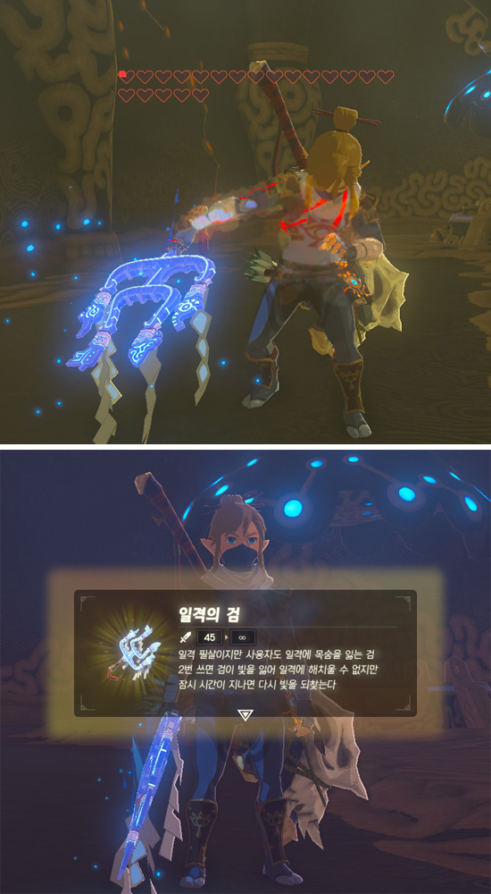시작의 대지. 4장소의 사당을 모두 클리어하면 가지고 있던 일격이 검이 부서지면서 4개의 빛으로 변한다.