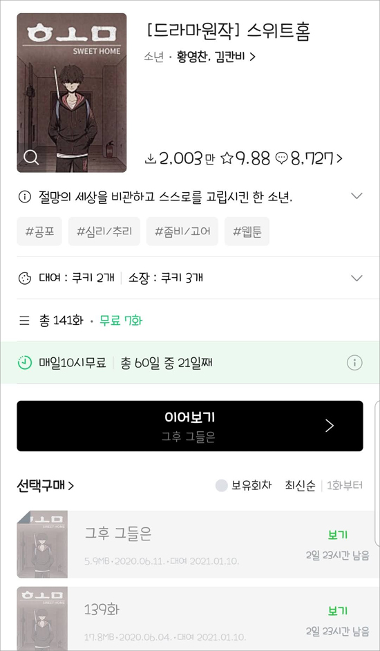 넷플릭스에서 스위트홈 시즌 1까지 다 보고 나서 시즌2까지 기다릴 수가 없었다.