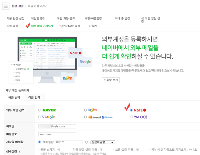 네이트 > 네이버 외부메일 가져오기 : POP3 오류 해결 방법