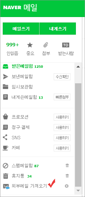 네이비에서 외부메일 가져오기 설정 방법