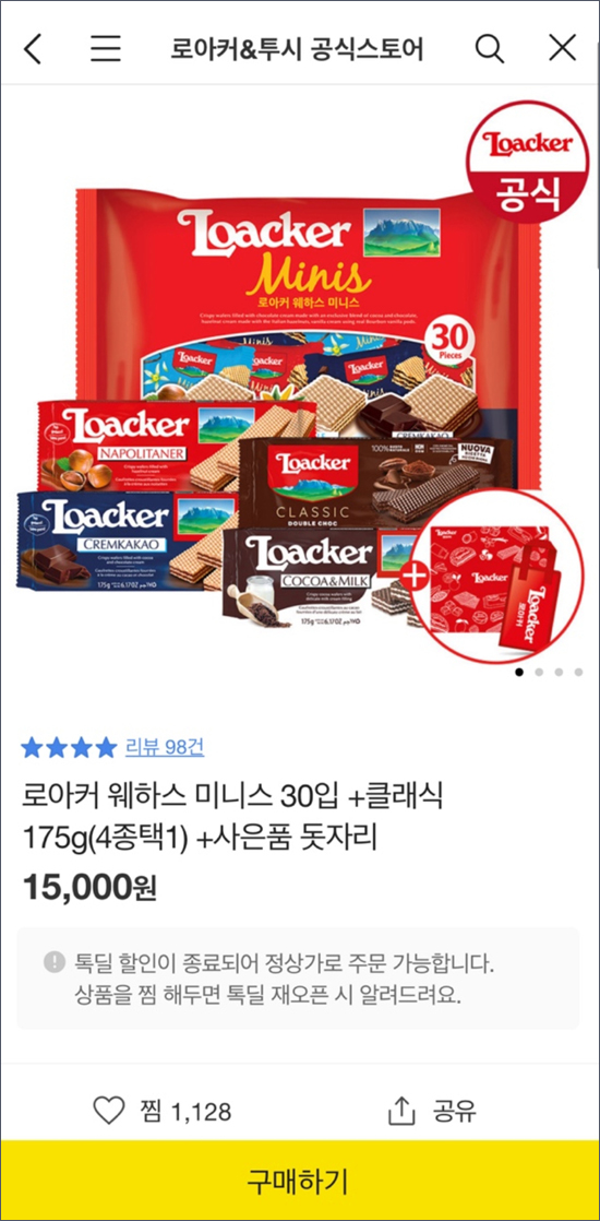 캡쳐화면은 15000원인데, 톡딜 할인 종료가이고