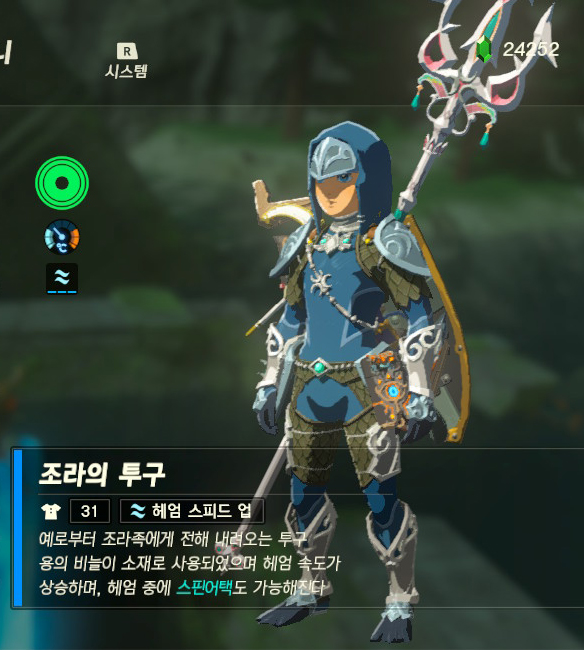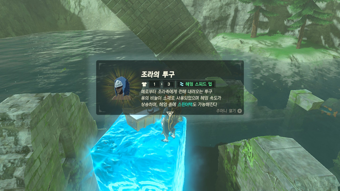 폭포를 거슬러 올라갈 수 있는 조라의 옷(상의/하의)는 진작에 찾았는데, 조라의 투구는 못찾고 있었다.