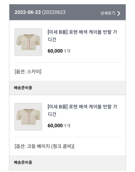 베이지/핑크 조합이 예뻐서 크림 베이지 색상만 사려고 했는데, 막상 후기 보니 스카이 색상이 많고 코디도 스카이가 더 무난하기도 해서 둘 다 샀다.