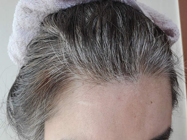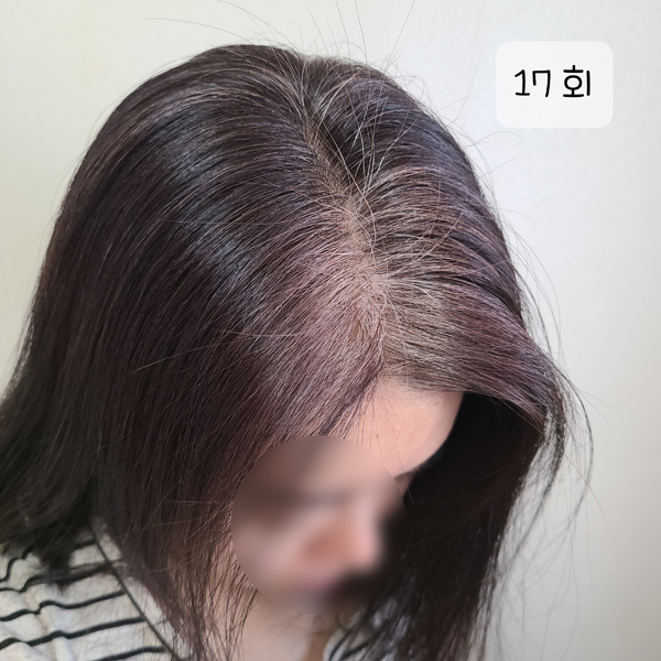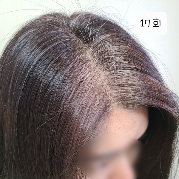 위 사진보다는 흰머리가 많이 옅어졌다. 그렇지만 아직까지는 누가 봐도 흰머리라는 게 티가 나서 만족스럽지 않다.