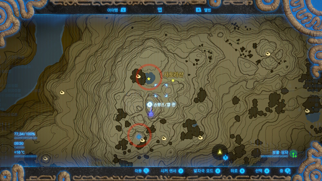빨간 동그라미 친 부분이 <모 라타니아의 사당> 이랑 신령 나오는 곳 위치이다.