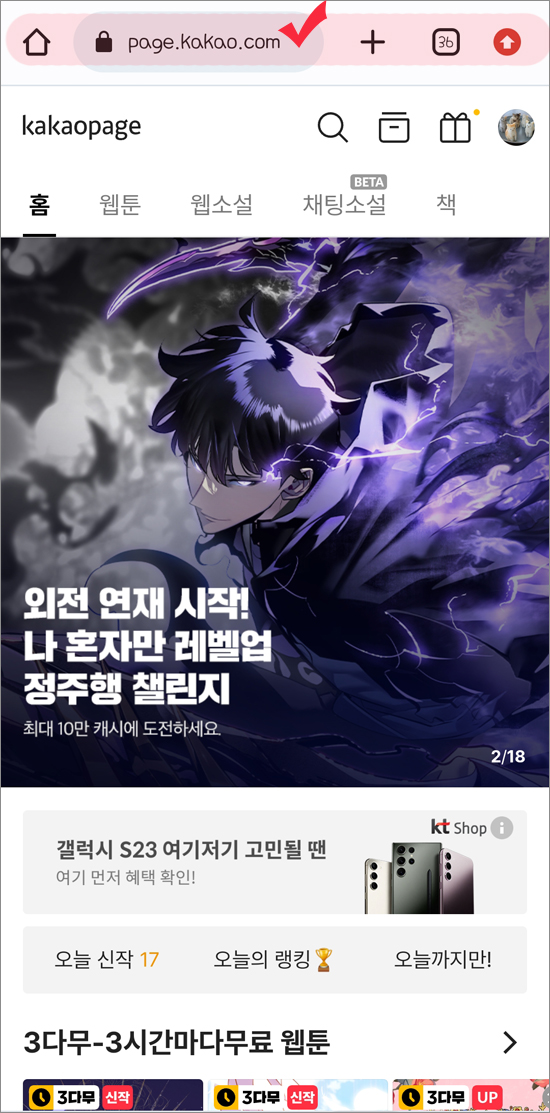 크롬이나 네이버 아무곳이나 들어가서 '카카오페이지' 검색하고 page.kakao.com 사이트로 들어가면 된다.