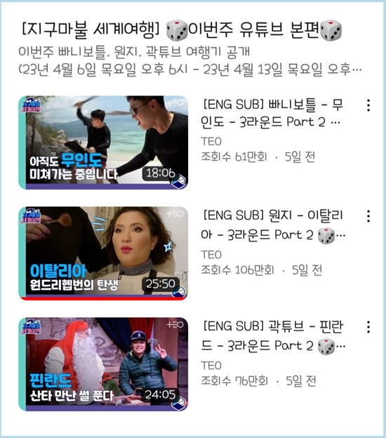 나는 넷플릭스에 올라온 <지구마불 세계여행> 프로그램으로 보는데, 그거말고 유튜브에도 따로 올라와있다.