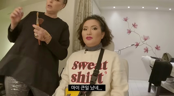 원지는 한 듯 안 한 듯 투명 메이크업을 기대한 것 같은데, 베이스부터가 엄청나게 두꺼워 보인다.