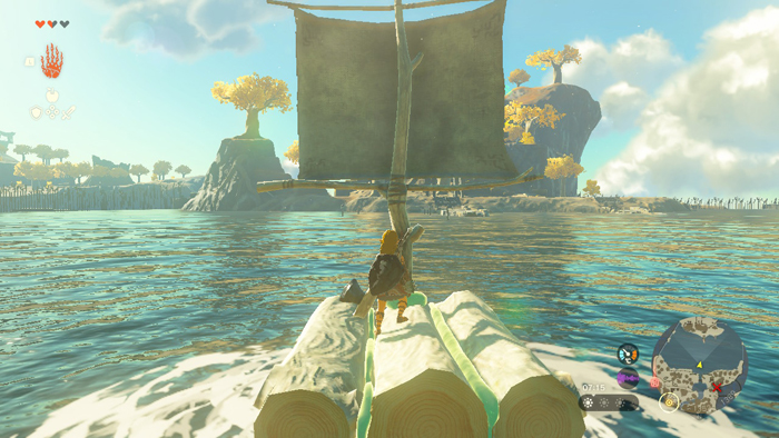 근처에 있는 통나무랑 돛을 세워서 뗏목을 만들었지만 코로그의 부채 같은 게 없어서 앞으로 나아갈지 걱정했는데, 다행히 바람이 불어서 뗏목만 띄어도 아주 잘 간다.