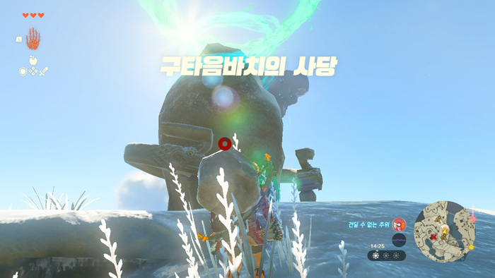 그전까지는 하늘섬에 사당이 3개만 있는 줄 알아서 날개 캡슐을 타고 높은 곳에서 시간의 신간으로 날아갔다.