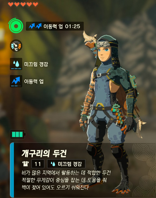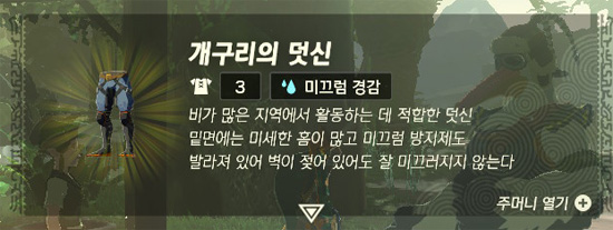 - 퀘스트 달성 시, 개구리 방어구 세트(미끄럼 경감)를 준다.