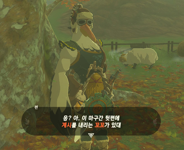 바로 옆에 하이랄 솔방울이 떨어져 있는데, 떨어진 솔방울을 따라서 가면 흰 염소가 있는 곳이 나온다.
