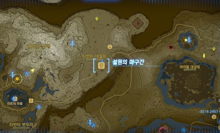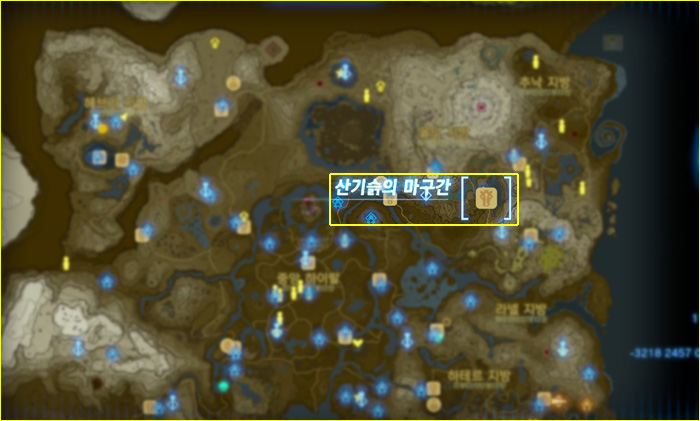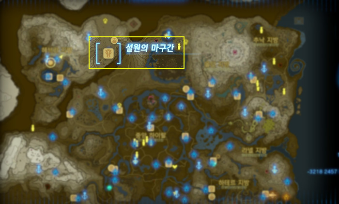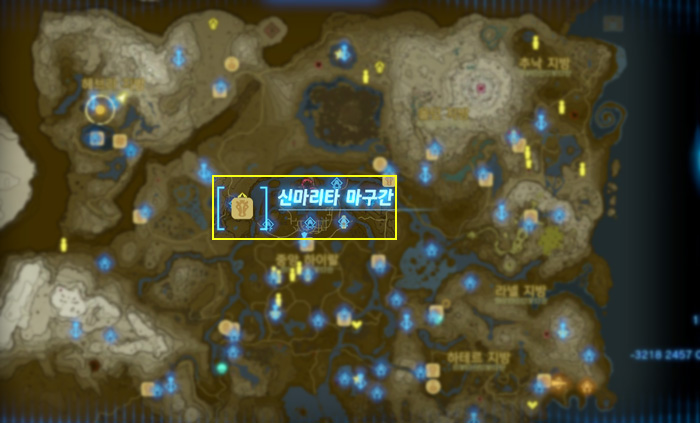 젤다의 전설 티어스 오브 킹덤 티마와카의 사당 위치 지도상으로 상단 오른쪽 '올딘 지방'에 있다. 올딘 협곡쪽으로 올라가면 '바루다스의 레스토랑'이 보이는데, 그 위치에서 사당이 바로 보인
