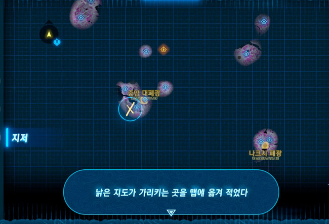 낡은 지도는 <낡은 지도가 가리키는 곳>이라는 알림이 뜬 후 지저에 위치가 표시된다.