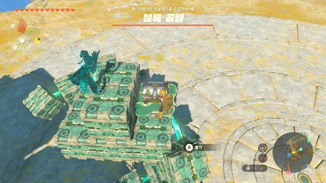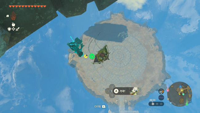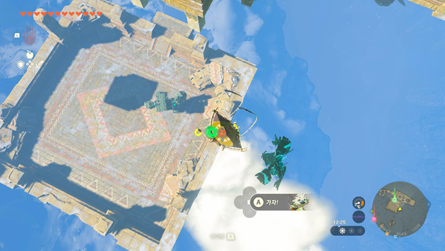 노란색 화살표 표시한 곳에 블록 골렘이 있는데, 2번째 방법처럼 패러세일 타고 골렘 위로 내리면 된다.