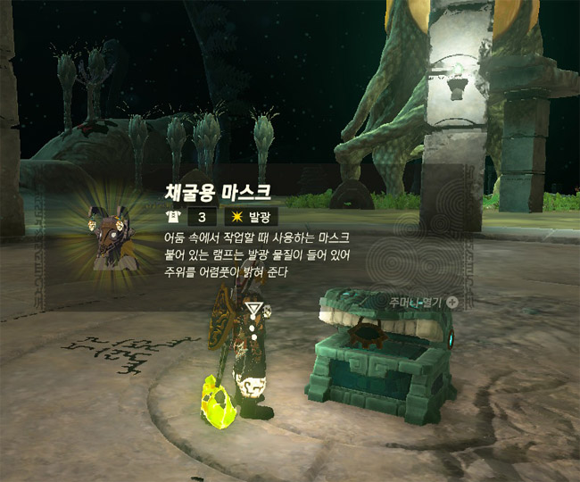 폐광 기둥 아래쪽에 놓인 상자에서 <채굴용 마스크>를 얻을 수 있다.