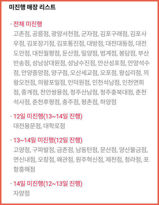 이벤트 기간 3일 전체 기간동안 미진행하는 매장이 있고, 특정 날짜만 미진행 하는 매장이 있으니 꼭 확인하기