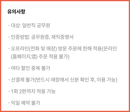 - 오프라인(전화 및 매장) 방문 주문에 한해 적용