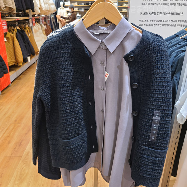 유니클로랑 짜임이랑 색상 거의 똑같은 디자인의 가디건 자켓을 발견하고 놀람.