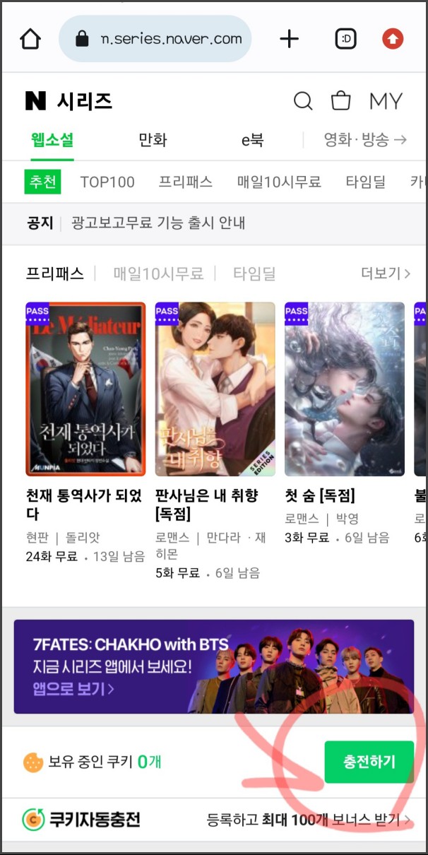 네이버 시리즈 앱 컬쳐랜드로 충전하기