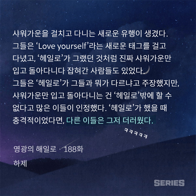 아니 근데 소설에서는 헤일로 노해일이라고 나오는데, 웹소설 제목은 왜 '영광의 해.일.로'야?