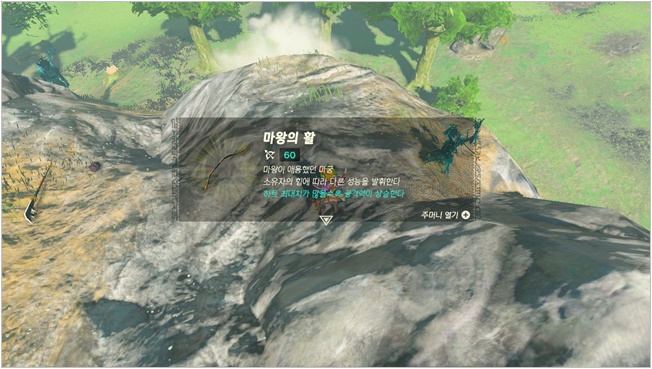공격력 60짜리라니, 여태 하이랄 지역 돌아다니면서 봐온 활 중에서 가장 공격력이 높다.