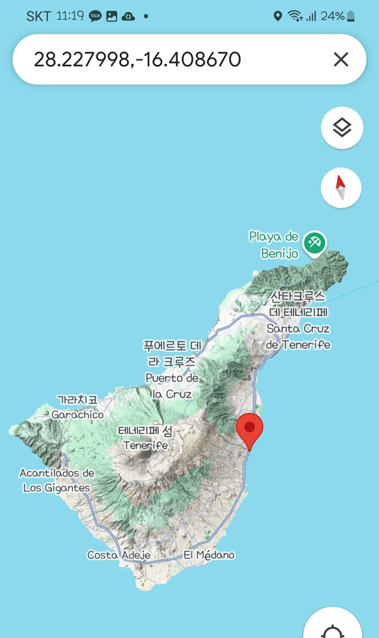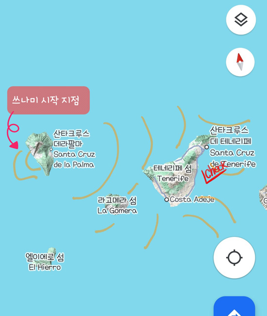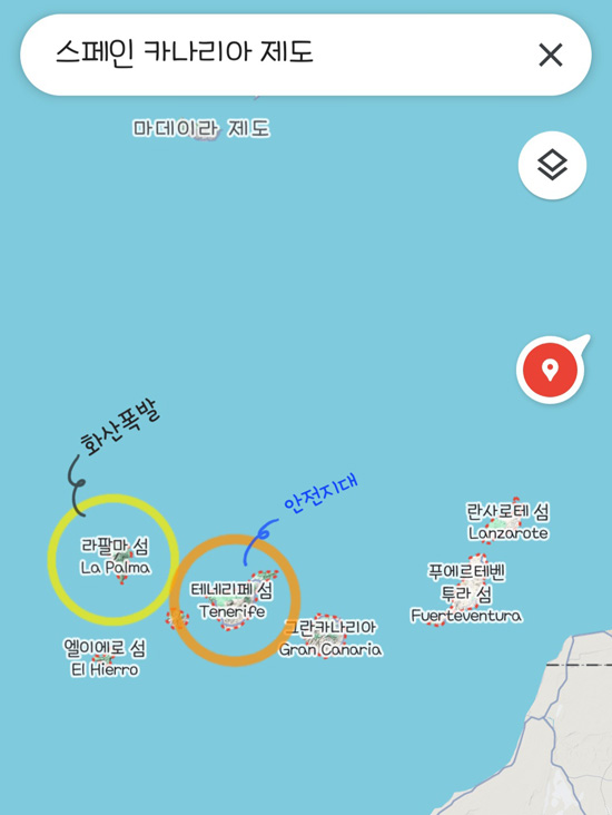 그리고 드라마에서 화산이 폭발한 라팔마 섬 말고, 그 옆에 있는 테네리페 섬으로 가족들이 대피하는데, 오른쪽에 테네리페 섬 위치도 있다.