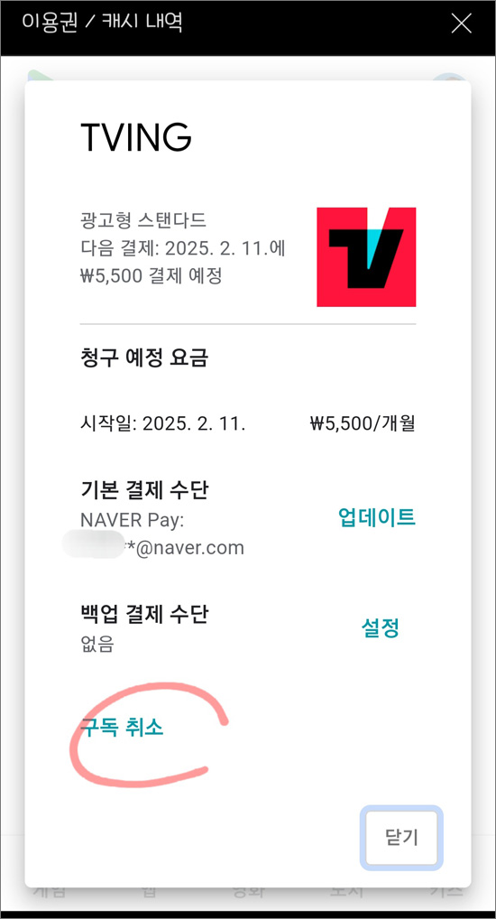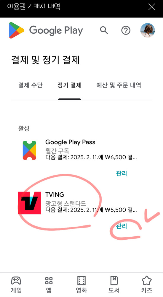 구글플레이패스 티빙 정기결제 구독취소 방법(티빙 광고형 스탠다드 해지)